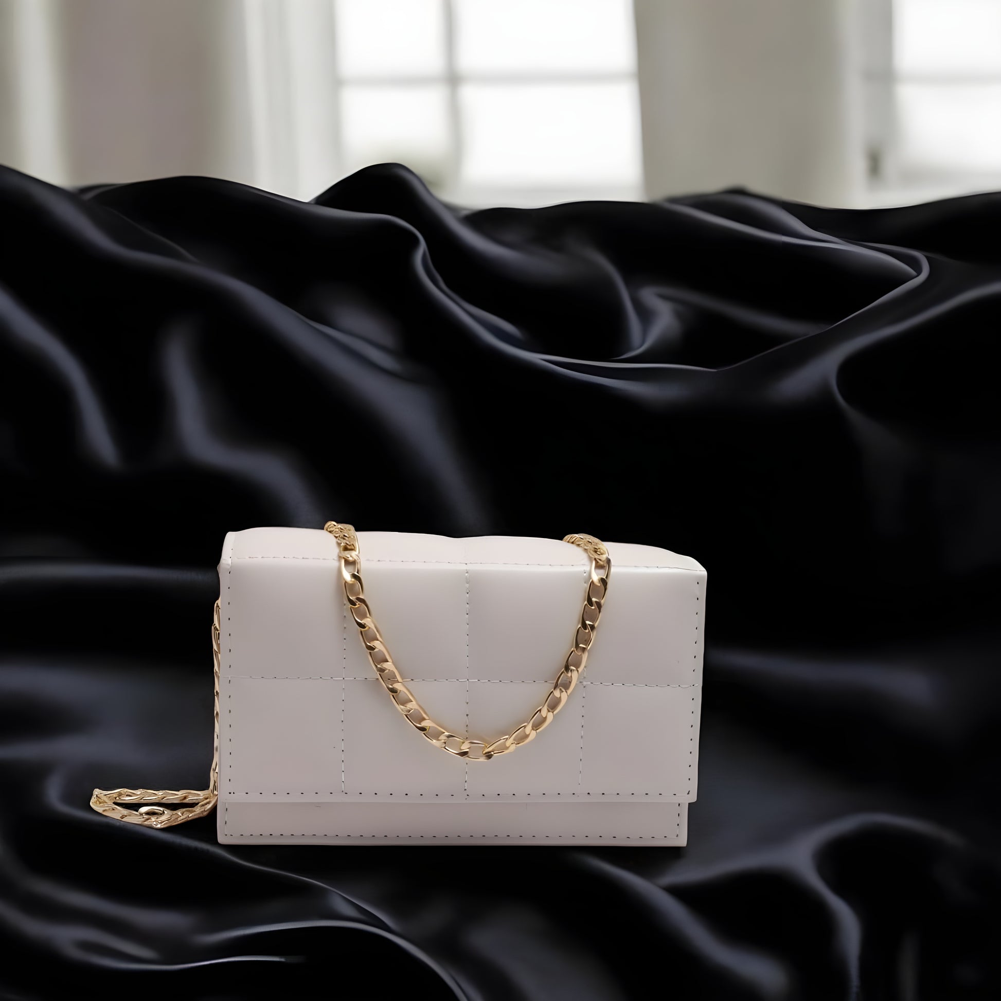 Elevate your look with the White Chain Shoulder Bag from The AK Collection — a perfect blend of elegance and modern style.